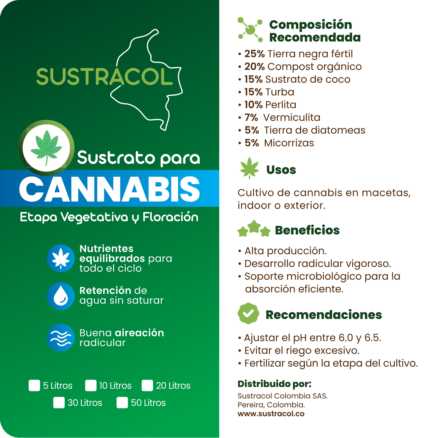 Uso Recomendado Sustracol es ideal para el cultivo de cannabis en interiores, exteriores y en invernaderos. Se recomienda utilizarlo para trasplantes, cultivo en macetas y camas de cultivo elevadas.